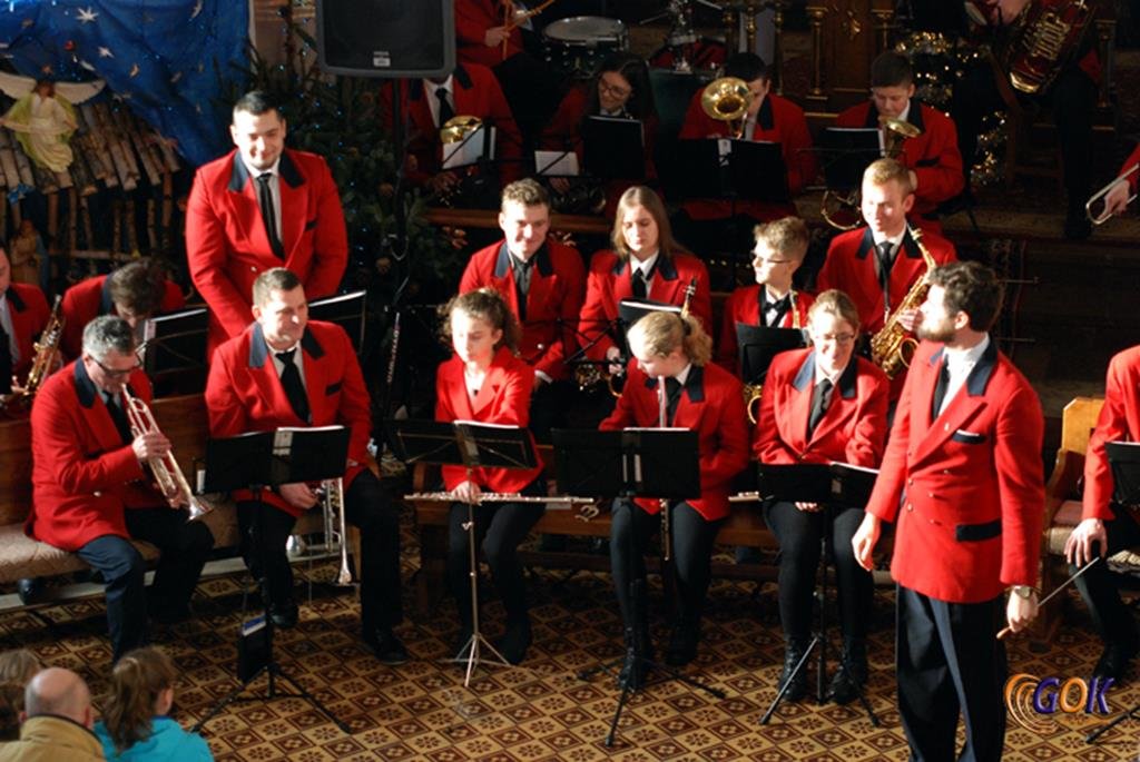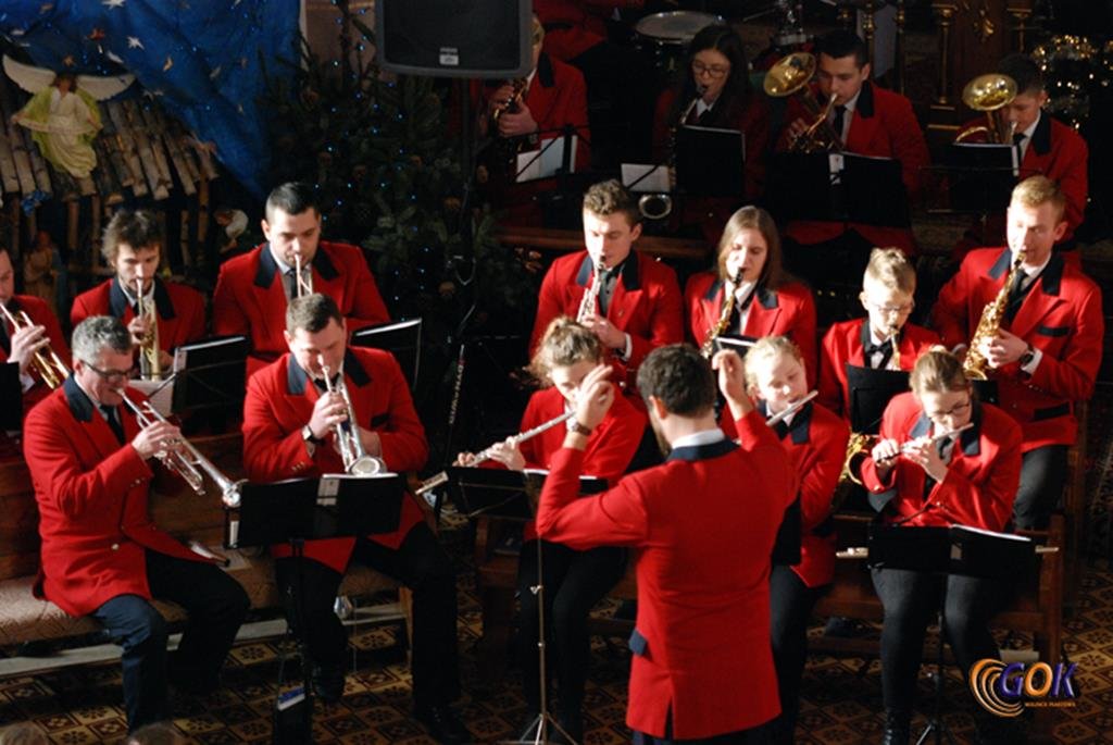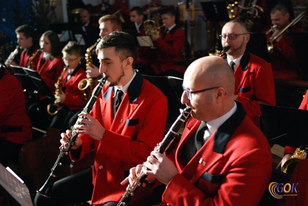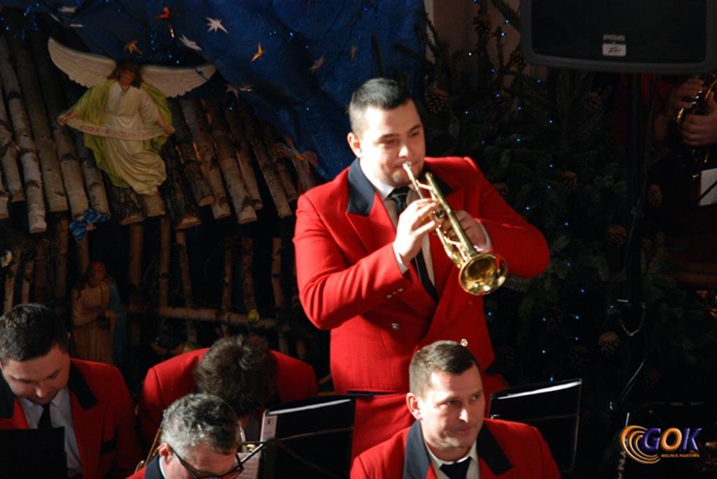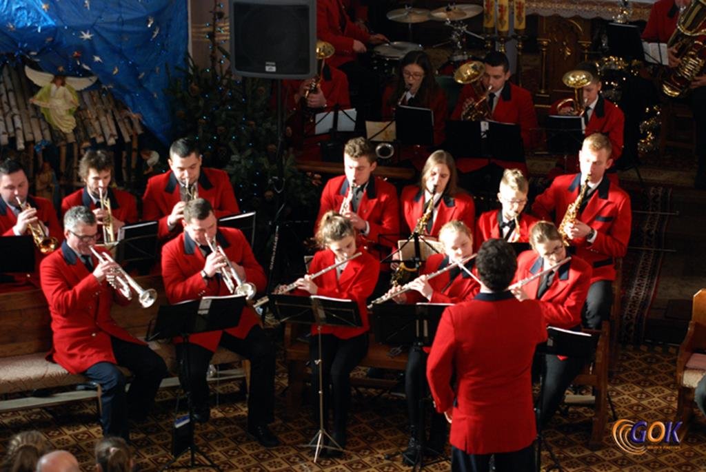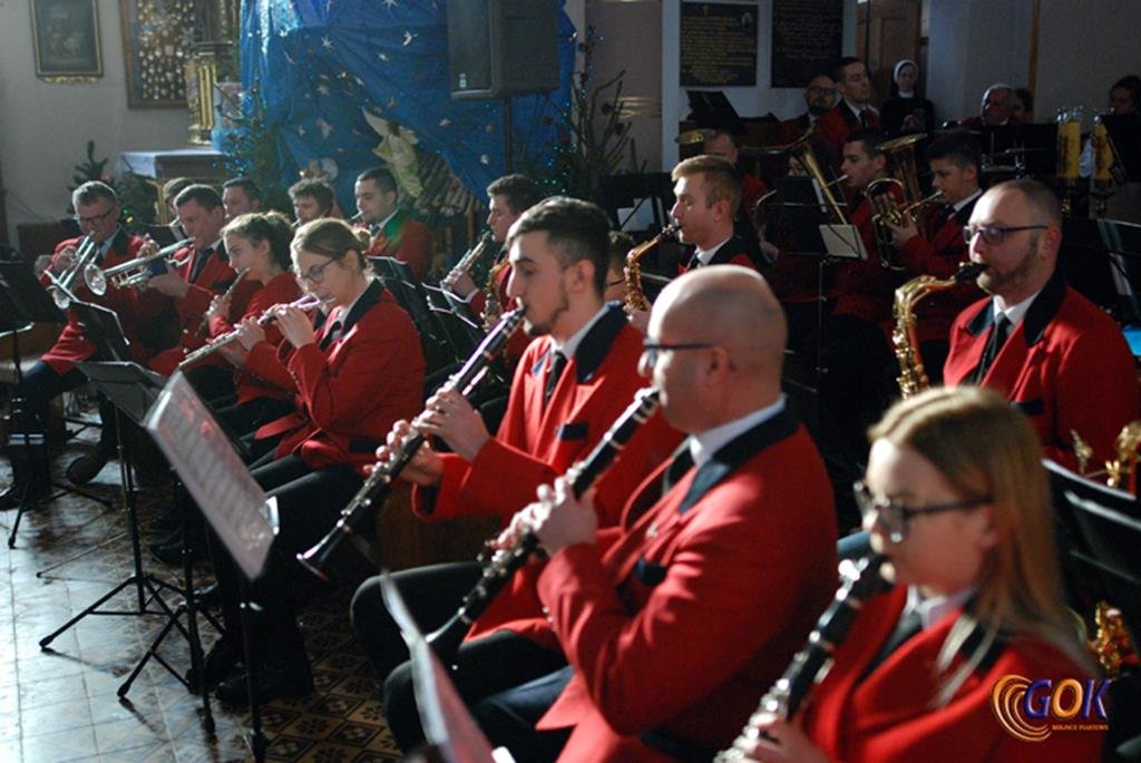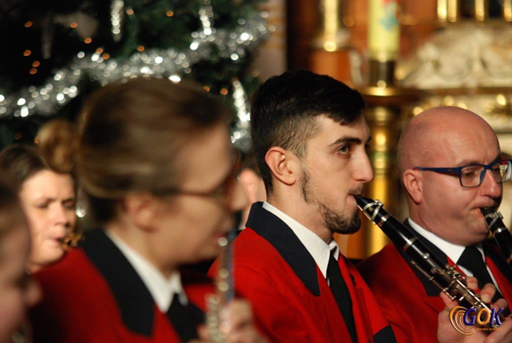 Po występie młodych artystów w świątyni donośnym echem rozbrzmiały dźwięki instrumentów dętych, pod batutą kapelmistrza Miłosza Markiewicza. Orkiestra wykonała kilka kolęd, a następnie przyszedł czas na utwory muzyki rozrywkowej i na zakończenie koncertu, jak na karnawał przystało, nie mogło zabraknąć wiązanki walców Johanna Straussa. Na końcu koncertu, życzenia Noworoczne w imieniu własnym i całej orkiestry złożył wszystkim Janusz Węgrzyn dyrektor GOK i zastępca wójta Magdalena Hec-Mrozek. Składamy serdeczne podziękowania proboszczowi parafii księdzu Andrzejowi Mroczkowskiemu za serdeczne przyjęcie naszych dęciaków.