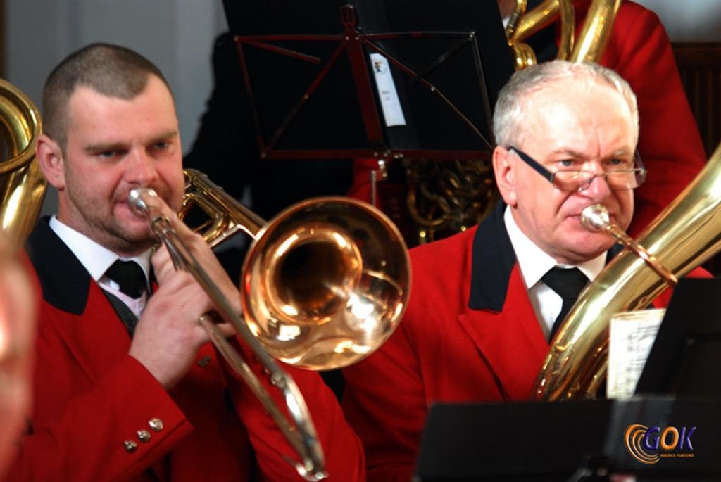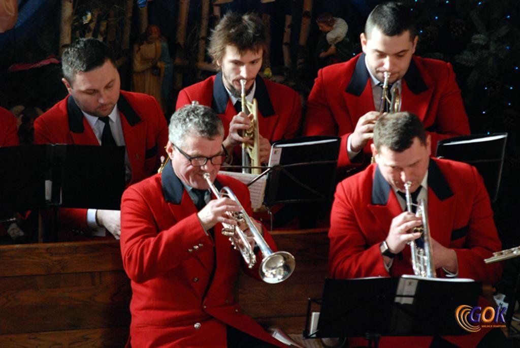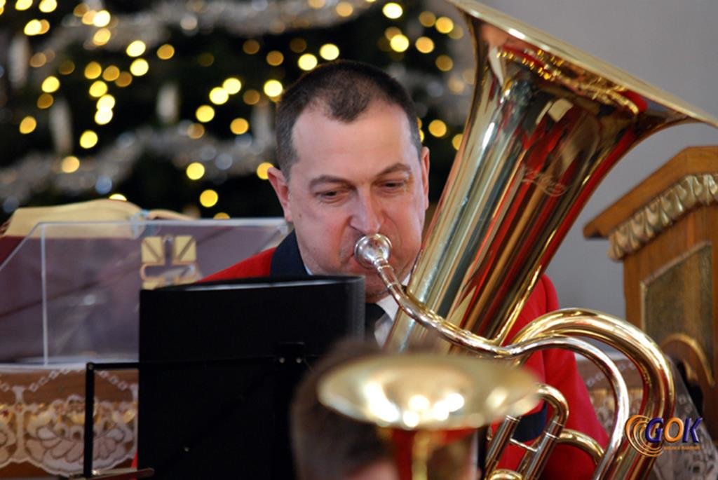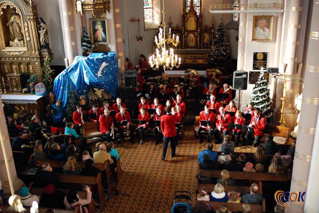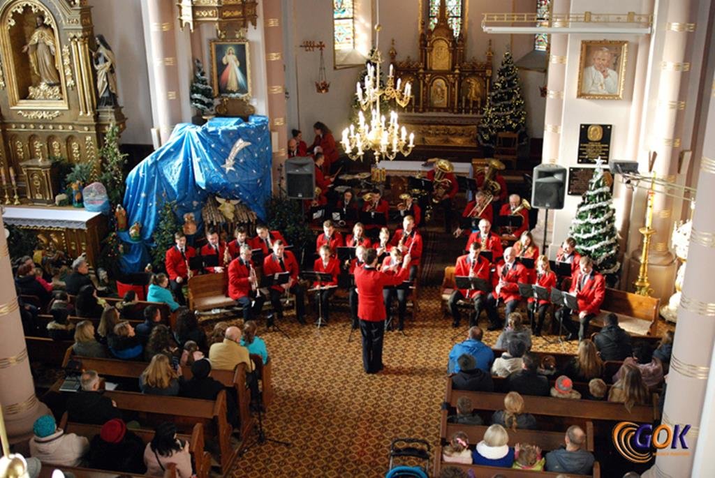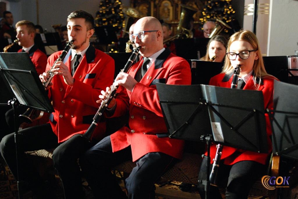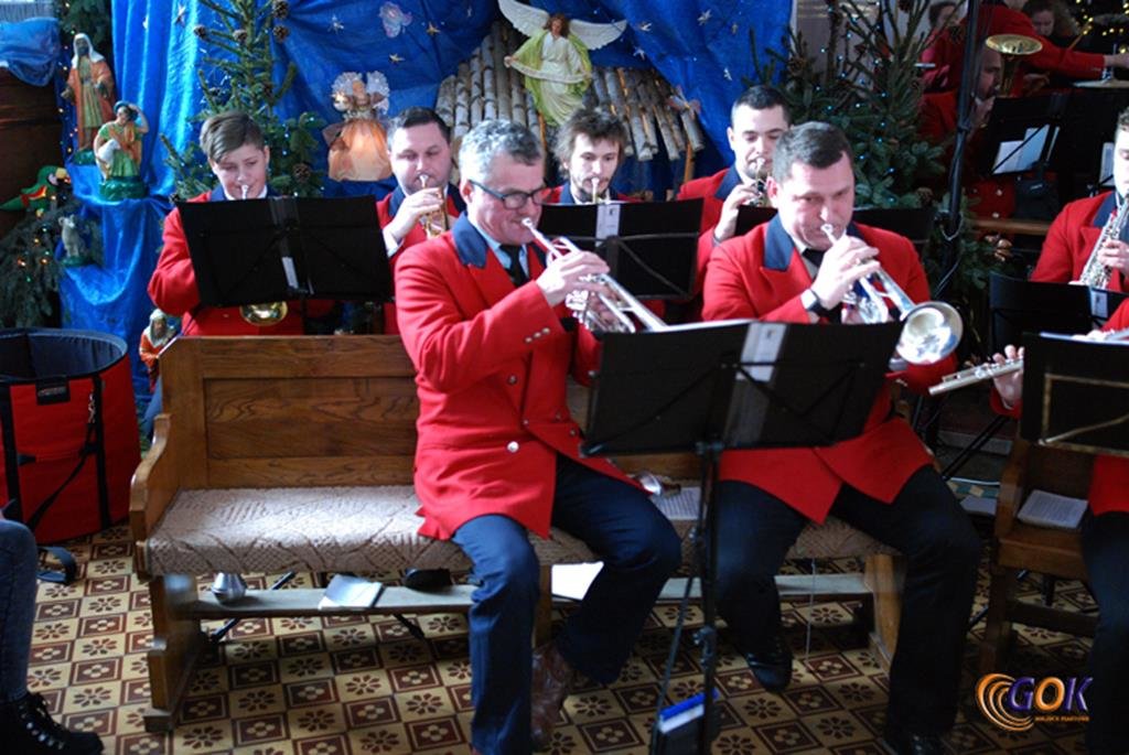 Po występie młodych artystów w świątyni donośnym echem rozbrzmiały dźwięki instrumentów dętych, pod batutą kapelmistrza Miłosza Markiewicza. Orkiestra wykonała kilka kolęd, a następnie przyszedł czas na utwory muzyki rozrywkowej i na zakończenie koncertu, jak na karnawał przystało, nie mogło zabraknąć wiązanki walców Johanna Straussa. Na końcu koncertu, życzenia Noworoczne w imieniu własnym i całej orkiestry złożył wszystkim Janusz Węgrzyn dyrektor GOK i zastępca wójta Magdalena Hec-Mrozek. Składamy serdeczne podziękowania proboszczowi parafii księdzu Andrzejowi Mroczkowskiemu za serdeczne przyjęcie naszych dęciaków.